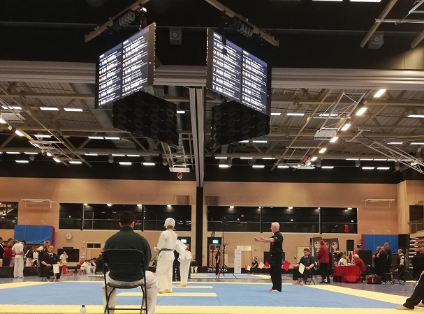 Lundbyskolan Sports Arena was completed just under two years ago. The arena is state-of-the-art, and has today’s standard when it comes to facilities. This includes ventilation (fresh indoor air throughout the day), large capacity changing rooms, a warm-up area, and not least technical details with large screens⇓ (with fight-info)